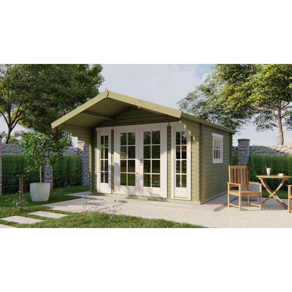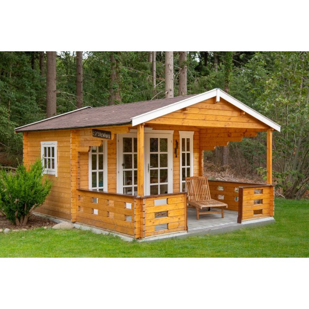 Das Blockhaus “Inglund” besticht durch sein zeitloses Design. Sein Format passt in nahezu jeden Garten und lässt sich vielseitig nutzen.
