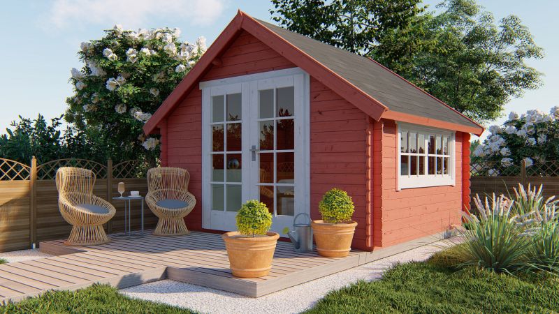 Das kompakte Blockhaus “Skov” passt in nahezu jeden Garten. Schaffen Sie sich Ihren eigenen, kleinen Hobbyraum.