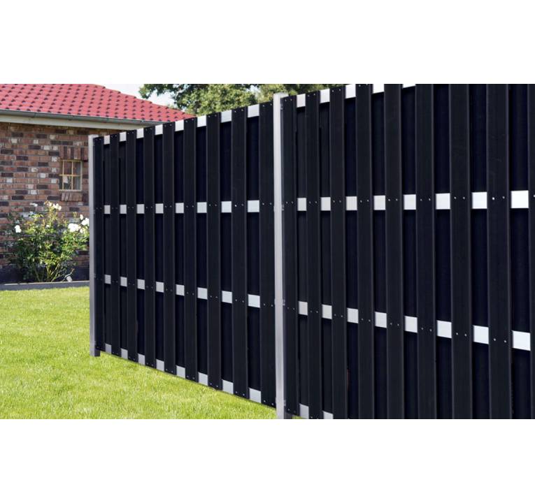 Die Kombination aus WPC und Aluminium macht den Elementzaun Grace Line robust, langlebig und edel. Die WPC-Bohlen weisen eine beidseitig glatte, geriffelte Oberfläche auf. Mit verschiedenen Zaunelementen ist der Sichtschutz variabel einsetzbar.