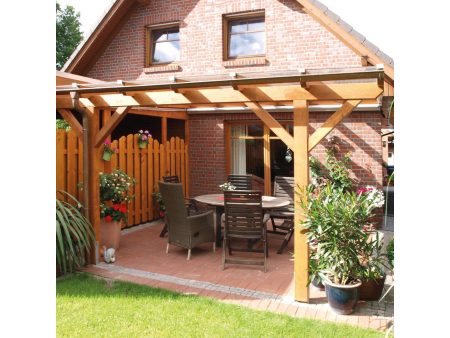 Terrassenüberdachung aus Holz mit Polycarbonat